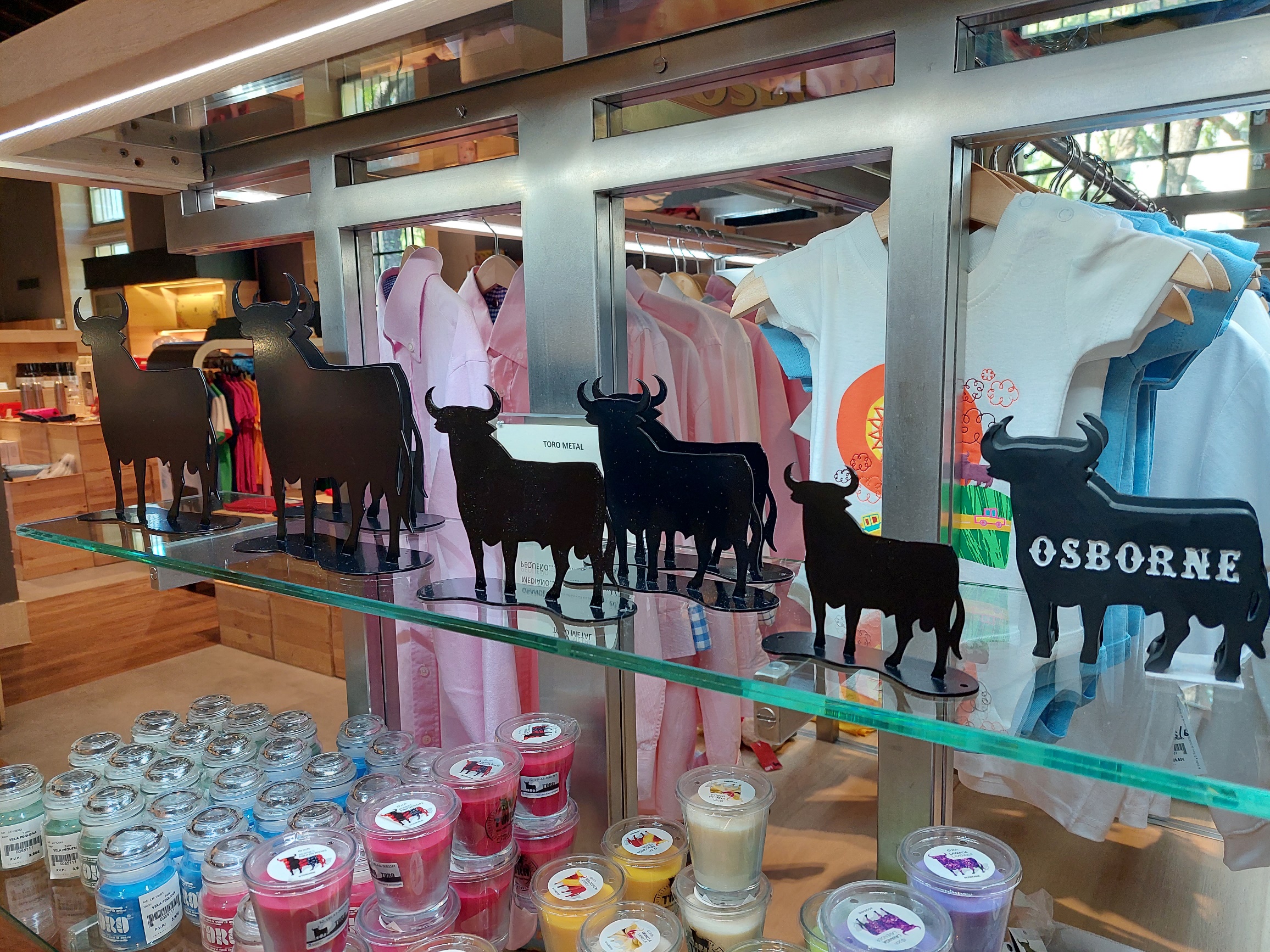 Due parole anche sull’elegante shop di Osborne, al quale avete accesso liberamente, anche se non partecipate a nessuna visita: otre allo Sherry e ai numerosi vini prodotti da questa casa, troverete un numero impressionante di articoli (t-shirt, borse, calamite, ombrelli, adesivi…) dove troneggia l’emblema del famoso toro nero.