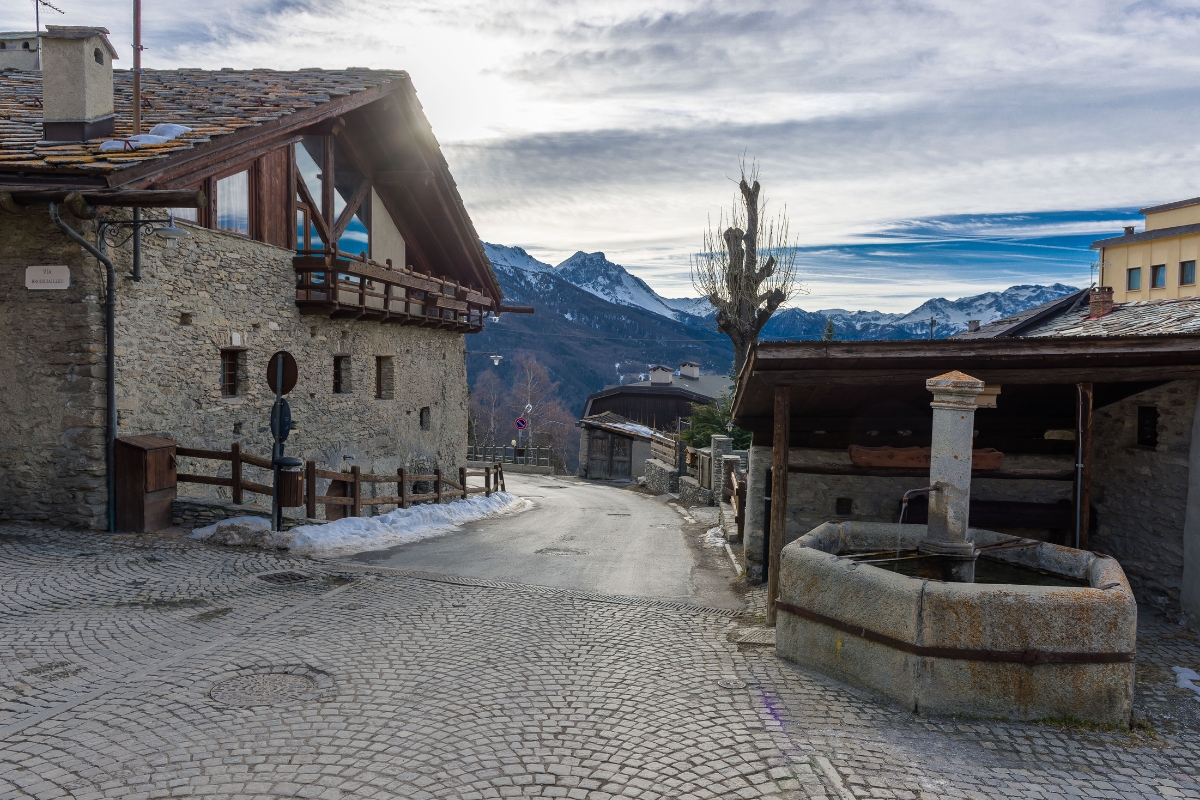 Pragelato è un insieme di piccole borgate in pietra, ognuna con un carattere proprio. Tetti innevati, fienili antichi e forni comunitari creano un quadro autenticamente alpino.