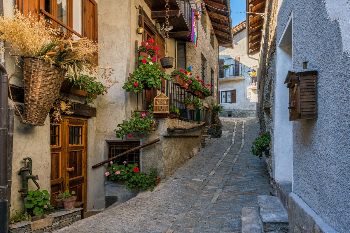 Usseaux, tra i Borghi più Belli d’Italia, affascina con i suoi murales: oltre 40 dipinti che raccontano scene di vita alpina, leggende e tradizioni locali. Le case in pietra, la meridiana dipinta e le fontane storiche creano un’atmosfera fiabesca.