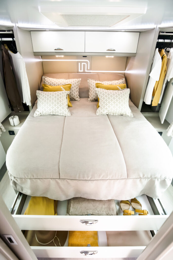 La gamma Exclusive si distingue per l’uso di materiali di qualità superiore. Notin sottolinea che il mobilio in vero legno è prodotto internamente dai maestri d’ascia, veicolo per veicolo, garantendo così un’attenzione al dettaglio senza pari.