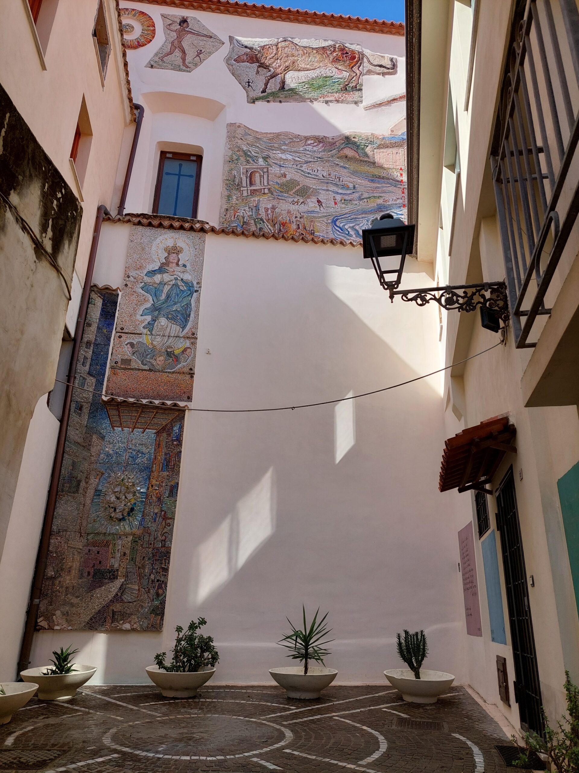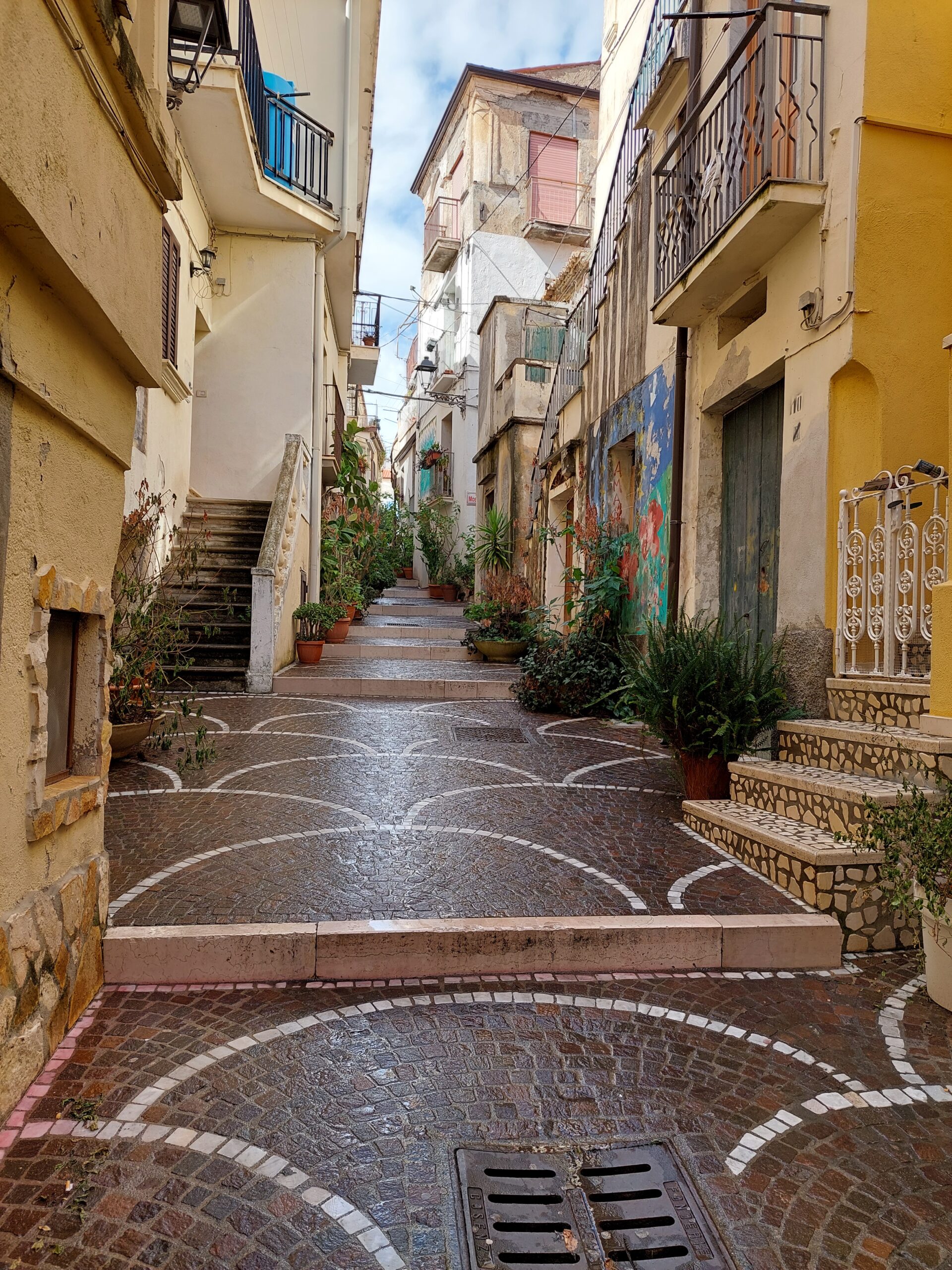 Anche con questo tempo, vale sempre la pena venire a Diamante, con i suoi vicoli, i murales che si trovate ovunque e il bel mare. Pranziamo al ristorante “da Casa mia”. Un abbondante antipasto per due con prodotti locali.) Franca prende un secondo di carne con crema di cedro (papacillo di scamone). Buona. Io prendo un’ottima pasta fatta in casa con ceci. Paghiamo 49 euro con un’acqua grande e un 1/4 di un modesto vino rosso.
