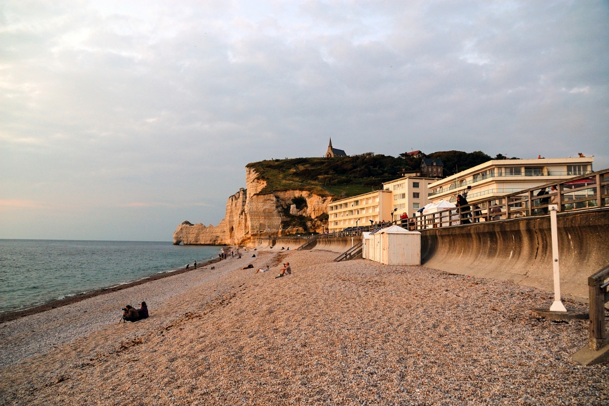 Punto di partenza per raggiungere le falesie d’Aval e d’Amont, la spiaggia di Etretat ospita le barche a riposo e accoglie i pescatori al mattino di ritorno dalla battuta di pesca. Se volete assaggiare il pesce fresco è qui che dovete recarvi al mattino.