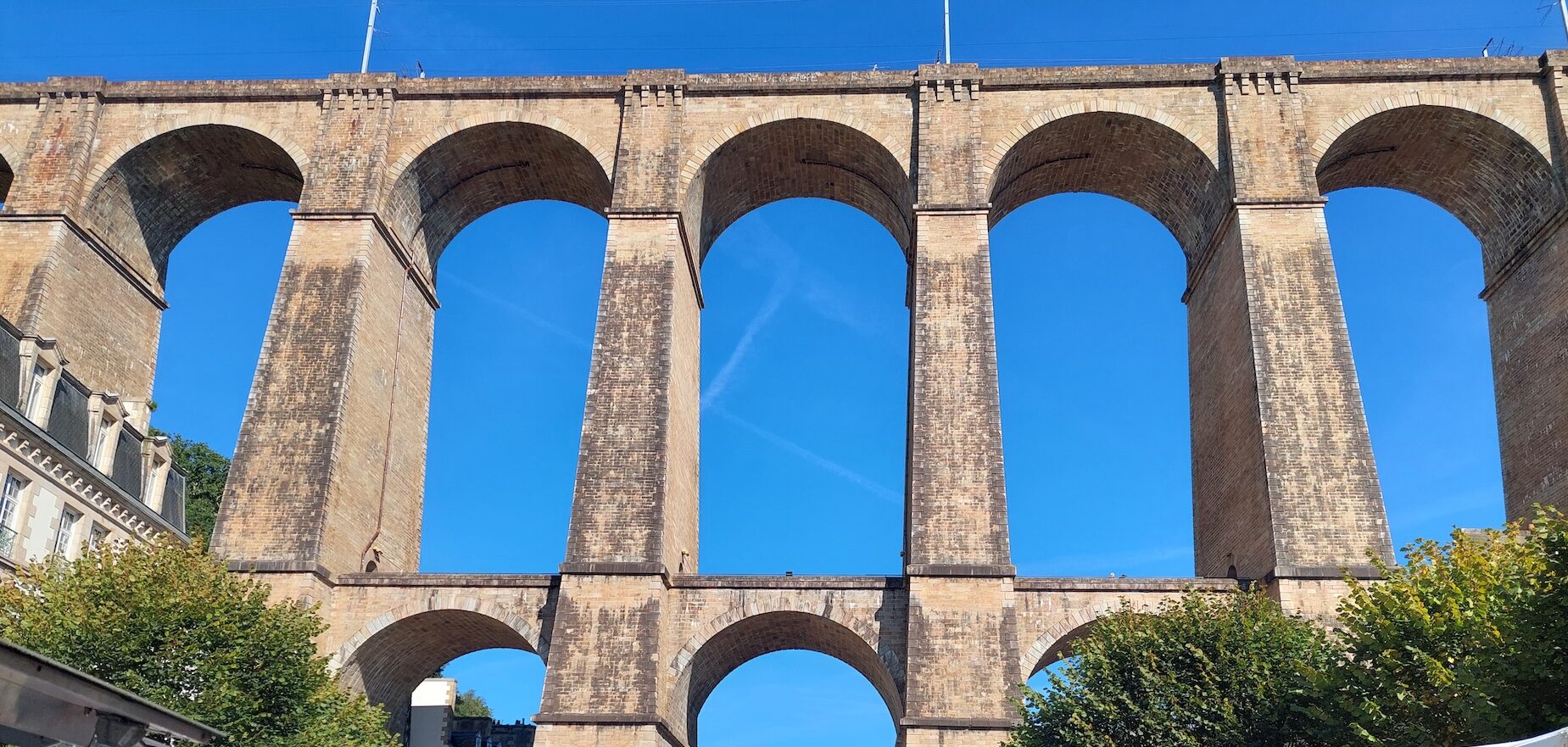 Scendendo a piedi dall’area di sosta verso il centro, dopo pochi minuti vedrete l’altissimo Viaduc, il grande viadotto ferroviario ottocentesco alto 62 metri che troneggia sopra il centro città.