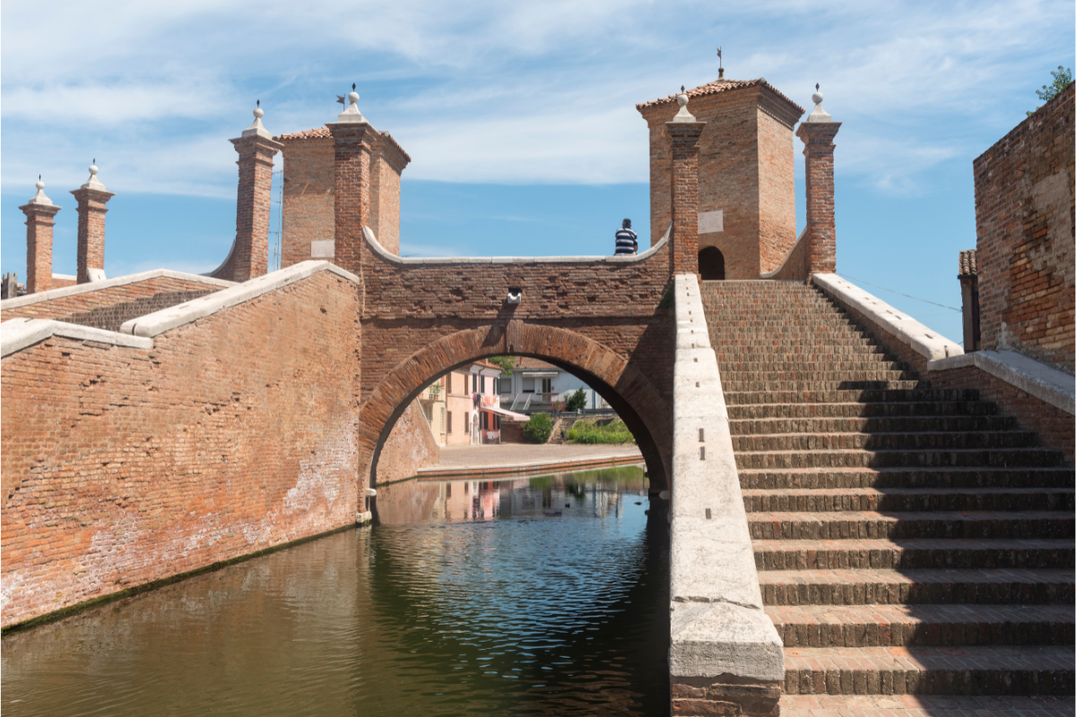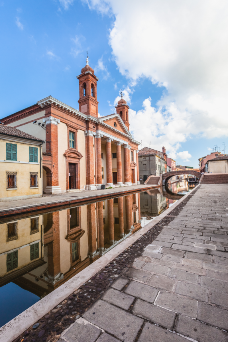 Il luogo principe della zona è senz’altro Comacchio con il suo centro storico intarsiato di canali interrotti da ponti e costellato di barche tipiche.