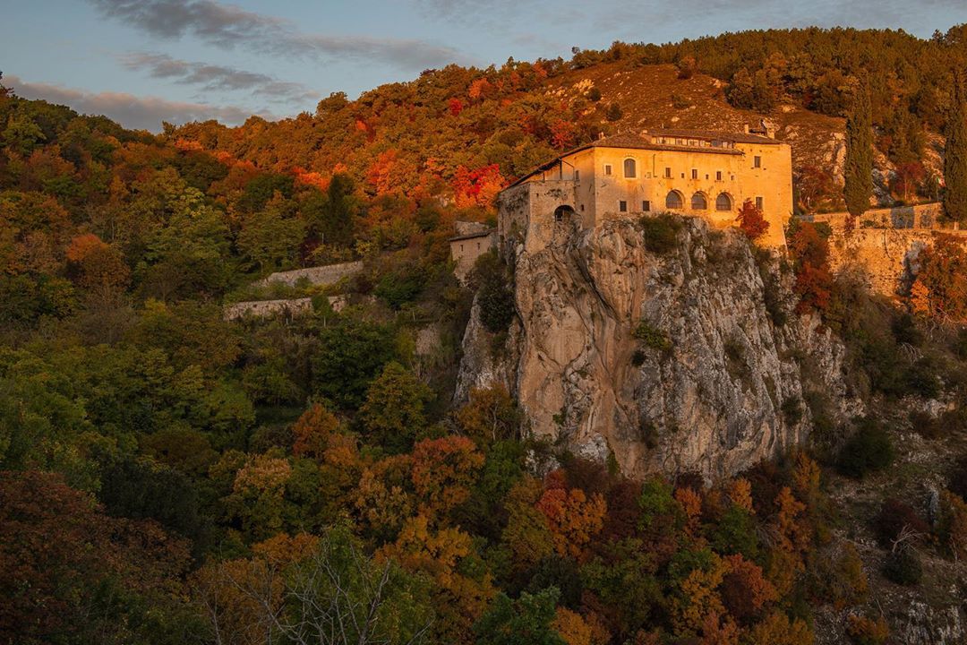 Costruito su uno sperone di roccia del Monte Circolo, al di sopra della chiesa di Santa Maria ad Cryptas, nel 1409, per ospitare le monache benedettine. Successivamente fu affidato ai frati minori fino alla decadenza e al suo utilizzo come lazzaretto. Venne ripreso nel XX secolo dai francescani che lo abbandonarono nel 2009 dopo il terremoto. É uno dei beni gestiti dal FAI e potete scoprirlo QUI