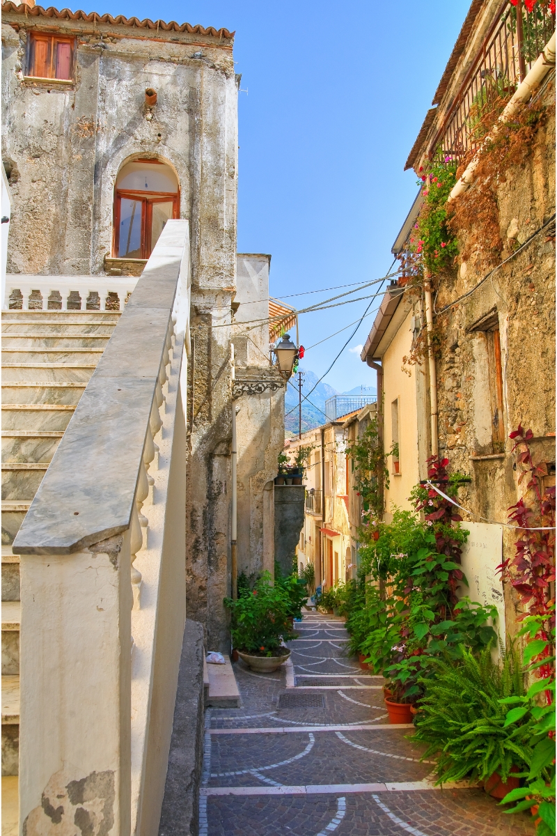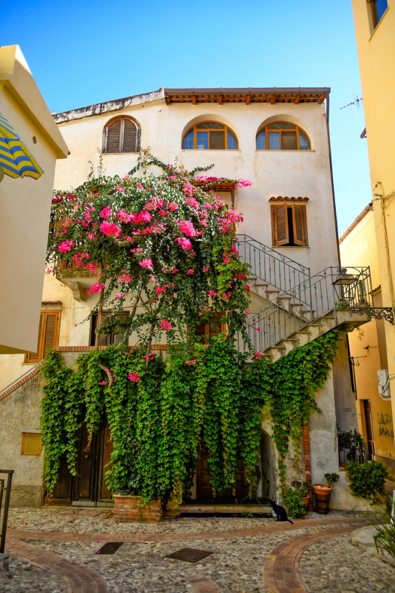 I vicoli stretti sono abbelliti da mazzi di peperoncino appesi ad essiccare, profumati dalle pietanze in cottura nelle cucine e adornati dalle buganvillee che rendono tutto più armonioso.