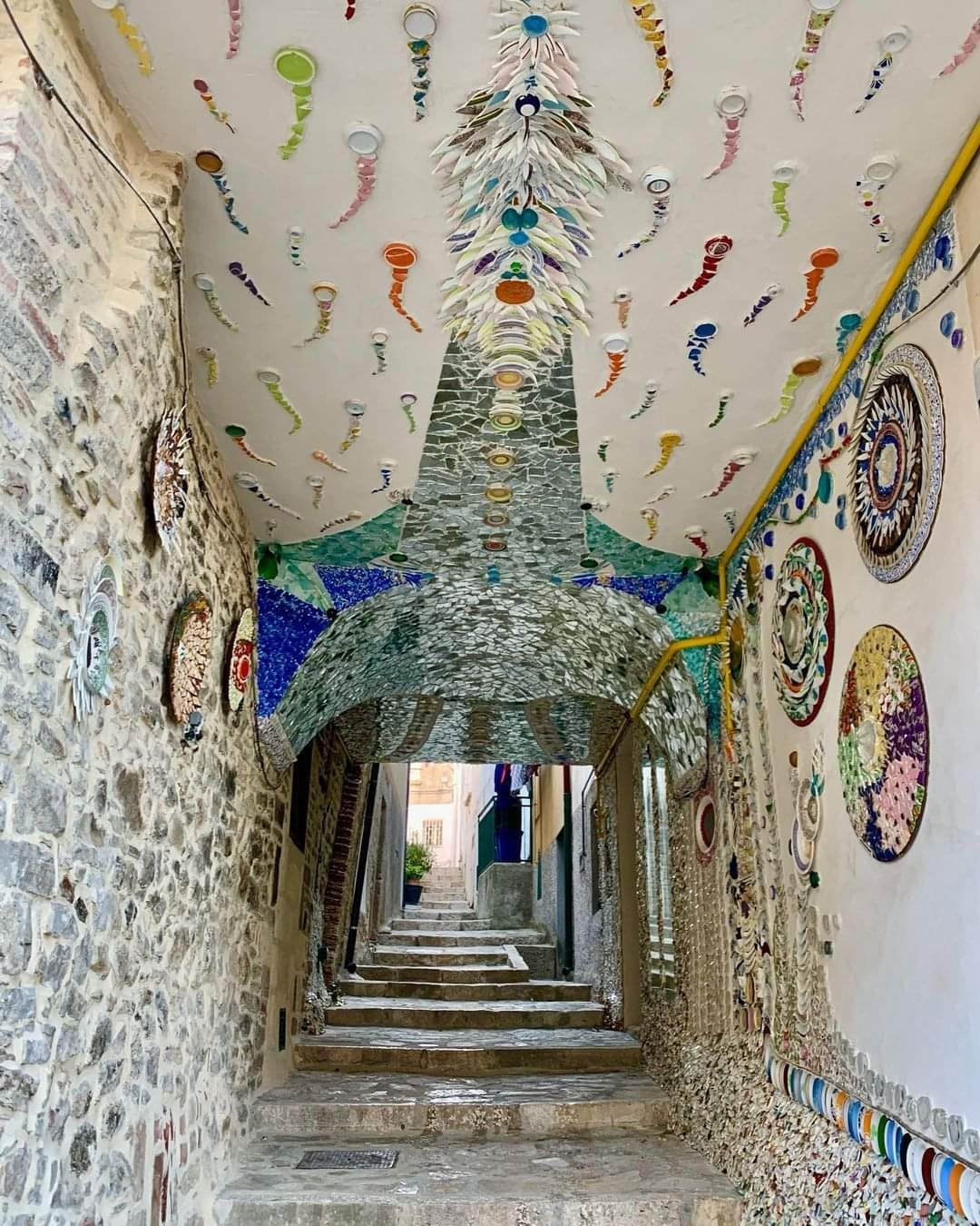 Passeggiando per le vie del centro rimarrete piacevolmente stupiti per la bellezza e i colori dei mosaici creati dall’artista Mario Brienza con materiali di riciclo.