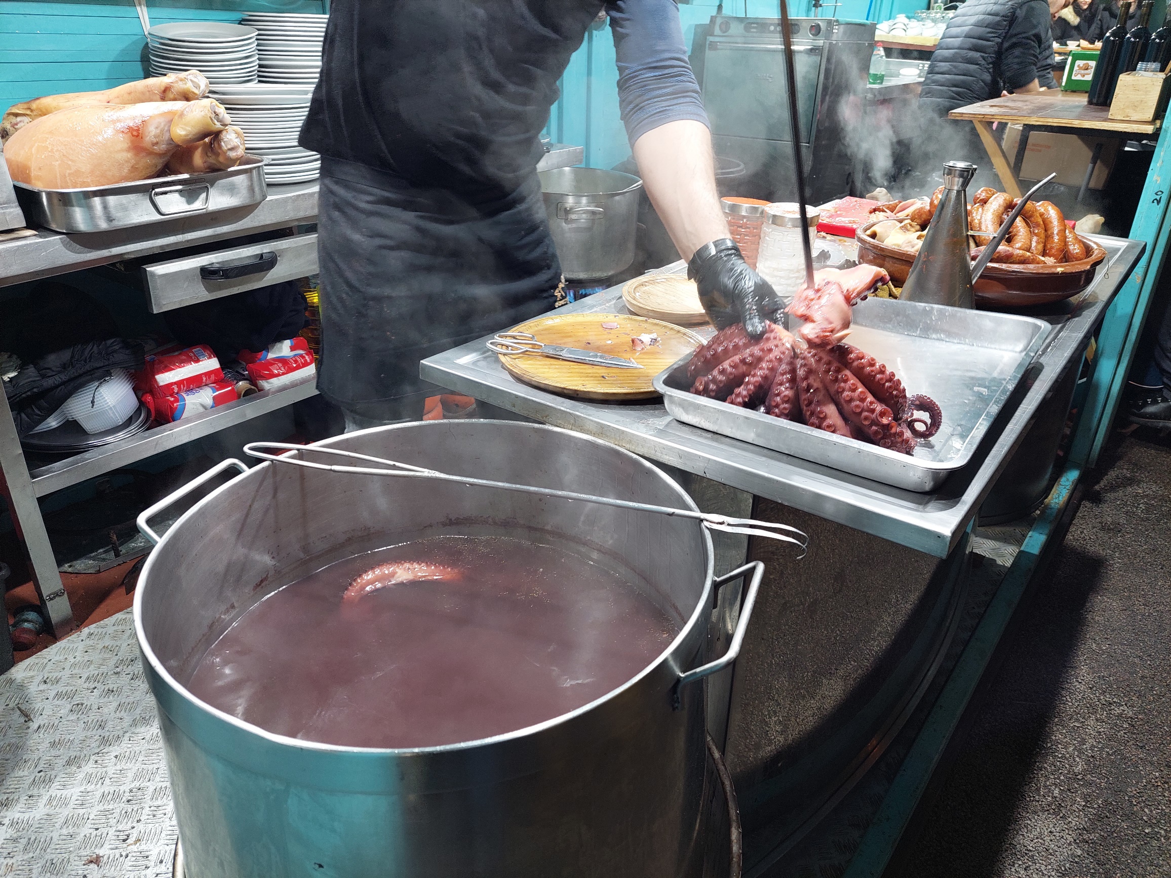 Vi consiglio una delle tante Pulperie che si trovano nel centro storico: la “Casa Fidel O’Pulpeiro”. Ovviamente il piatto forte è il tenero “Pulpo a la gallega” (in galiziano polbo á feira, «pulpo a la feria» ) un piatto poco elaborato, ma molto saporito grazie alla presenza di un mix di peperoncino dolce e piccante insieme.