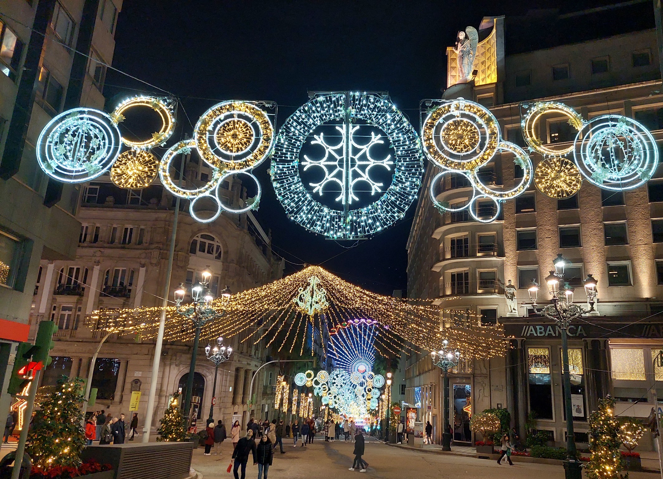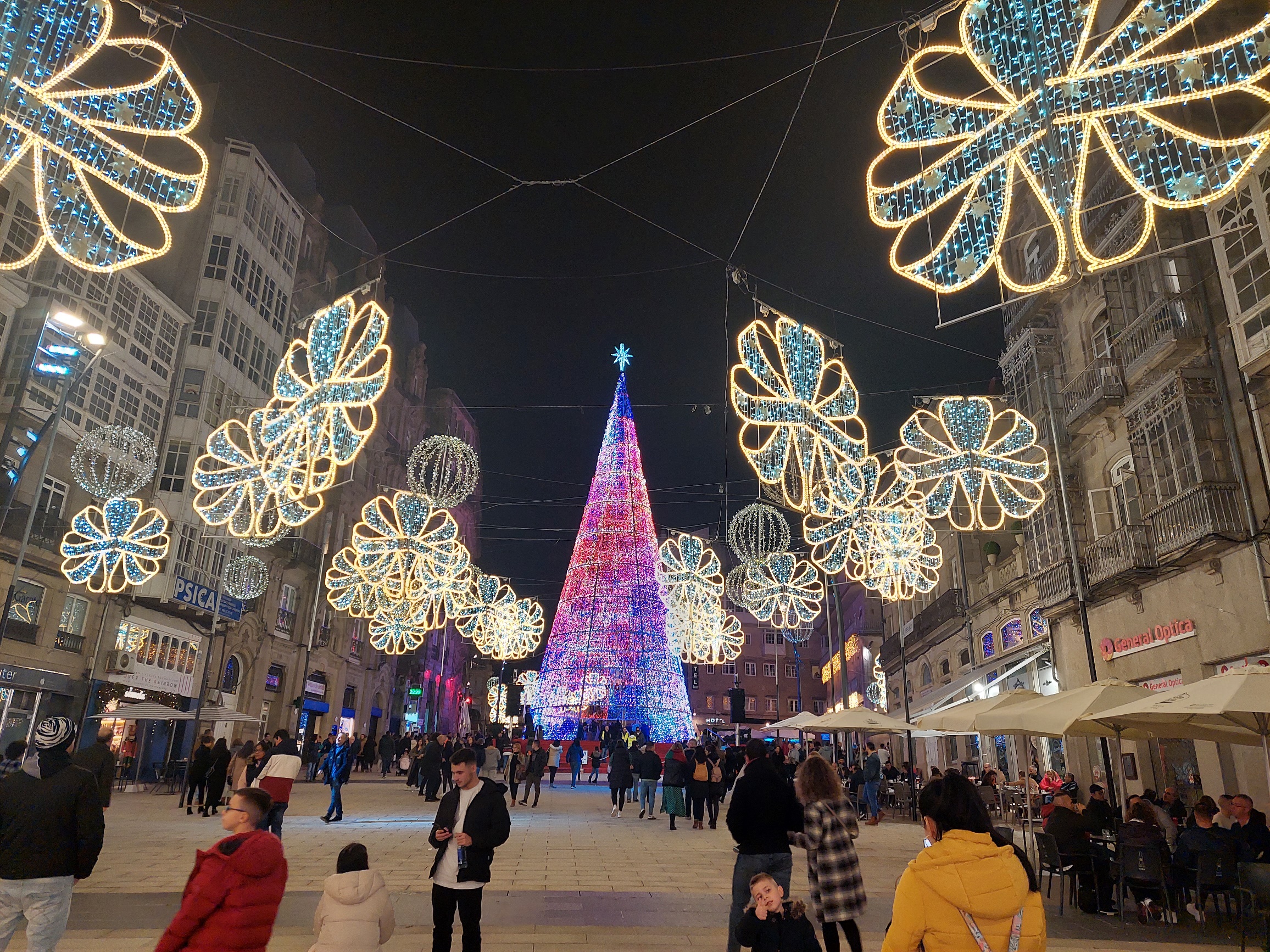 Infatti, negli ultimi anni, Vigo con le sue luminarie è diventata un’icona del Natale: ben 11 milioni di luci LED illuminano le strade e troverete tante istallazioni luminose. Tra gli addobbi più belli ci sono: un albero con luci a led alto più di 35 metri presso la Porta do Sol, una palla di Natale alta più di 10 metri nella Farola de Urzáiz, un gigantesco pacco regalo tra la Gran Vía e via Urzáiz, un grande pupazzo di neve e un’incredibile stella di Betlemme a Gar. Insomma, una vera esplosione di luci natalizie.
