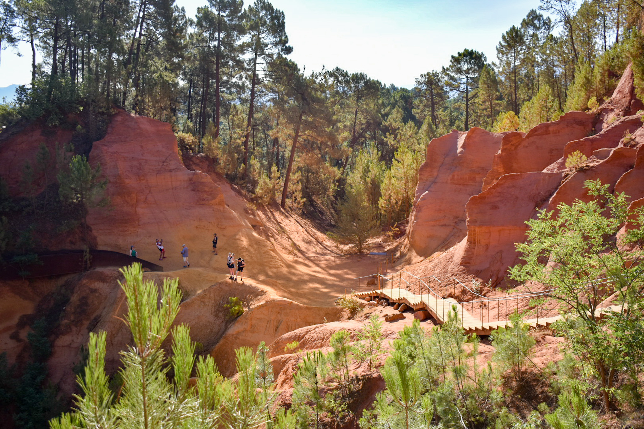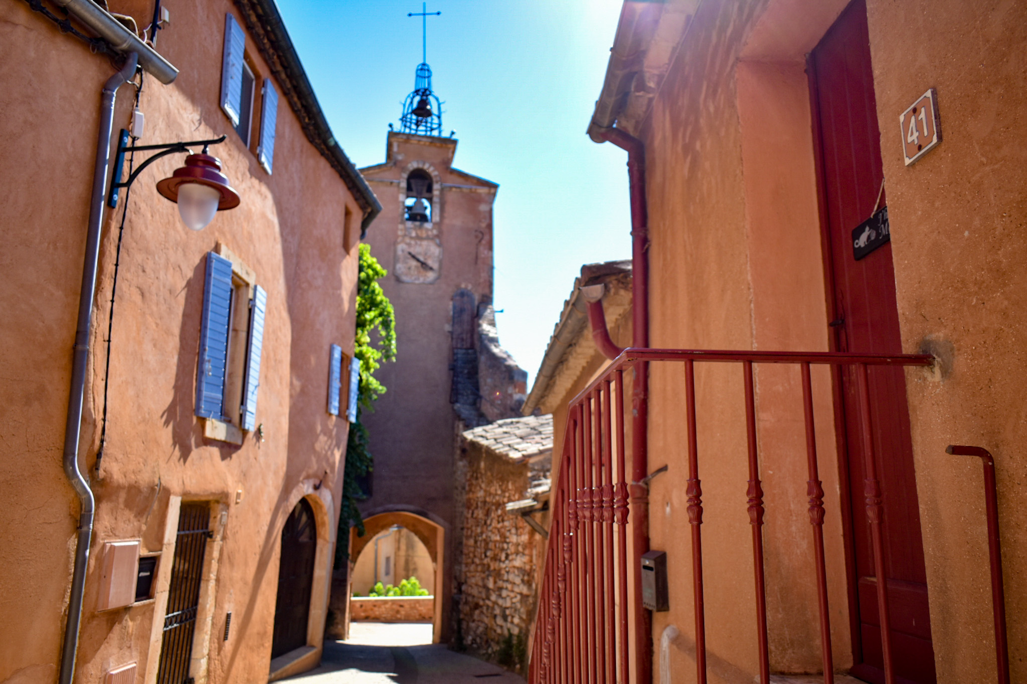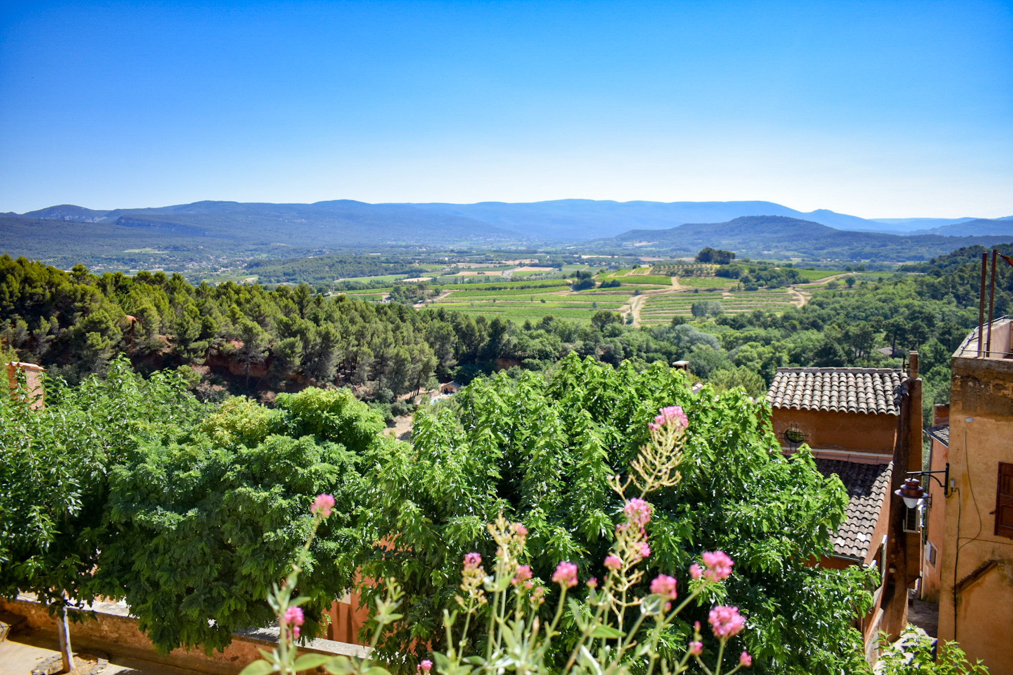 Il borgo è stato costruito sulla falesia che scende a strapiombo verso la vallata e dalla terrazza del centro potrete vedere un panorama mozzafiato che spazia fino ai monti della Vaucluse. Per vedere il borgo nella sua completezza potete andare verso l’ingresso del sentiero dell’Ocra e girarvi: la vista è grandiosa!