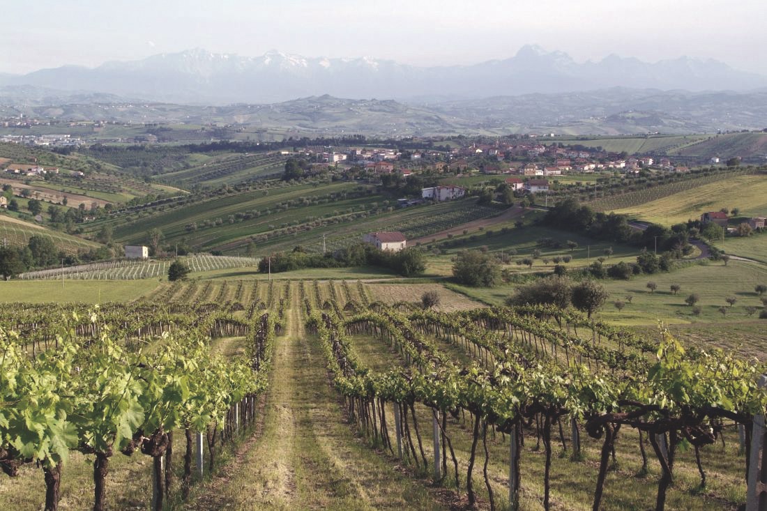 Inserito nello splendore delle Colline Teramane sospese tra il verde dei Monti della Laga e l’azzurro dell’Adriatico, nella parte nord che guarda alle Marche insiste l’areale di produzione del Controguerra DOC. Trenta chilometri e cinque borghi – Controguerra, Torano Nuovo, Ancarano, Corropoli e Colonnella – in grado di regalare autentici paesaggi da cartolina, con i borghi medievali circondati da poggi ricamati da vigneti, uliveti e campi coltivati che profumano di brezza di mare.
