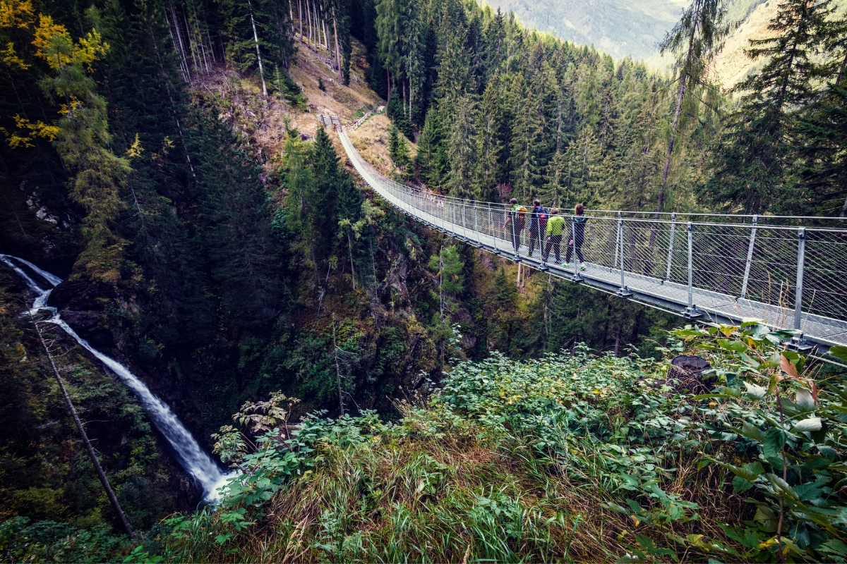 Sospeso a 60 metri da terra, il Ponte Tibetano della Val di Rabbi permette di vedere da vicino le Cascate del Rio Ragaiolo, con la sua passerella lunga 100 metri.