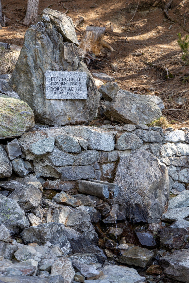 Partendo dall’abitato di Resia, frazione di Curon, è possibile fare una breve passeggiata verso la Sorgente del Fiume Adige, a 1550 metri s.l.m.
