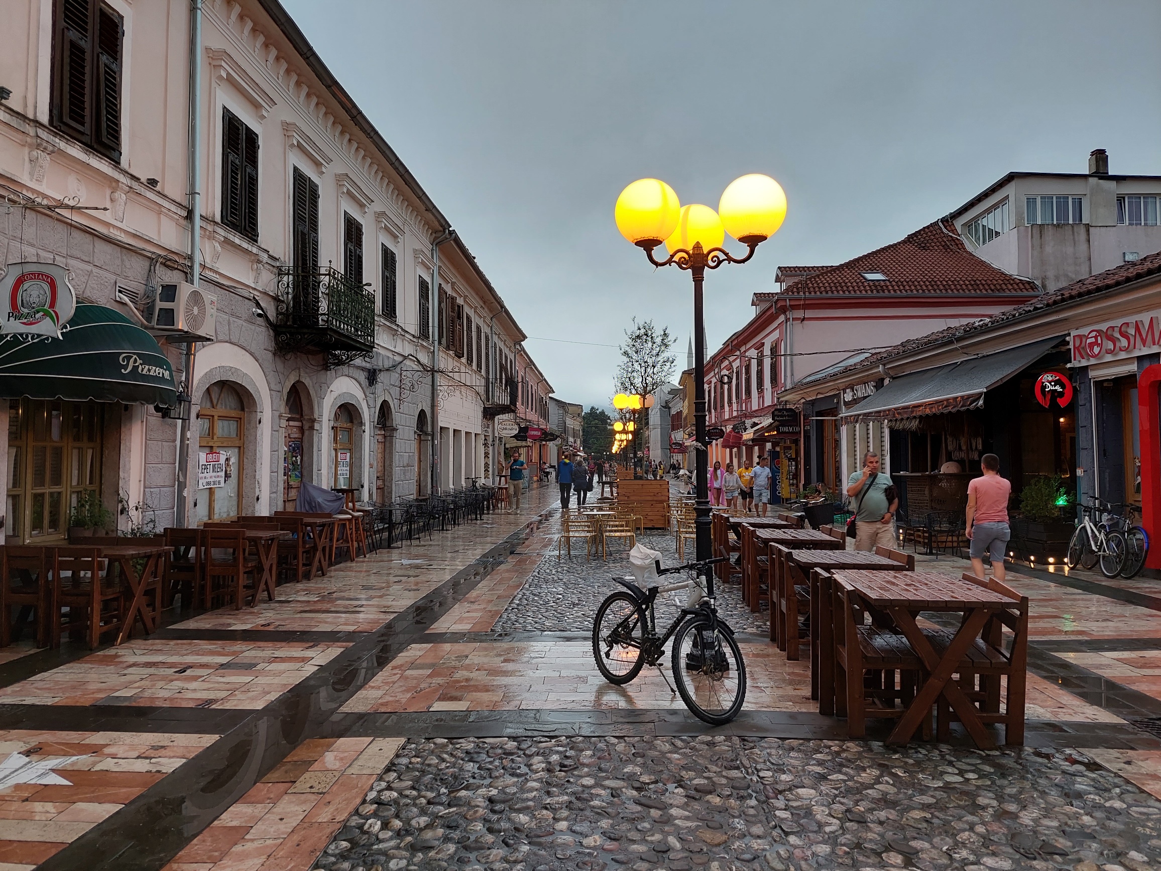 Attivati nella zona nuova, ceniamo al volo in una pasticceria dove fanno un po’ di tutto. Infatti mangiamo sul posto un ottimo Kebab albanese e prendiamo dei baklavà che portiamo al camper, dove li degusteremo prima di bere il caffè.