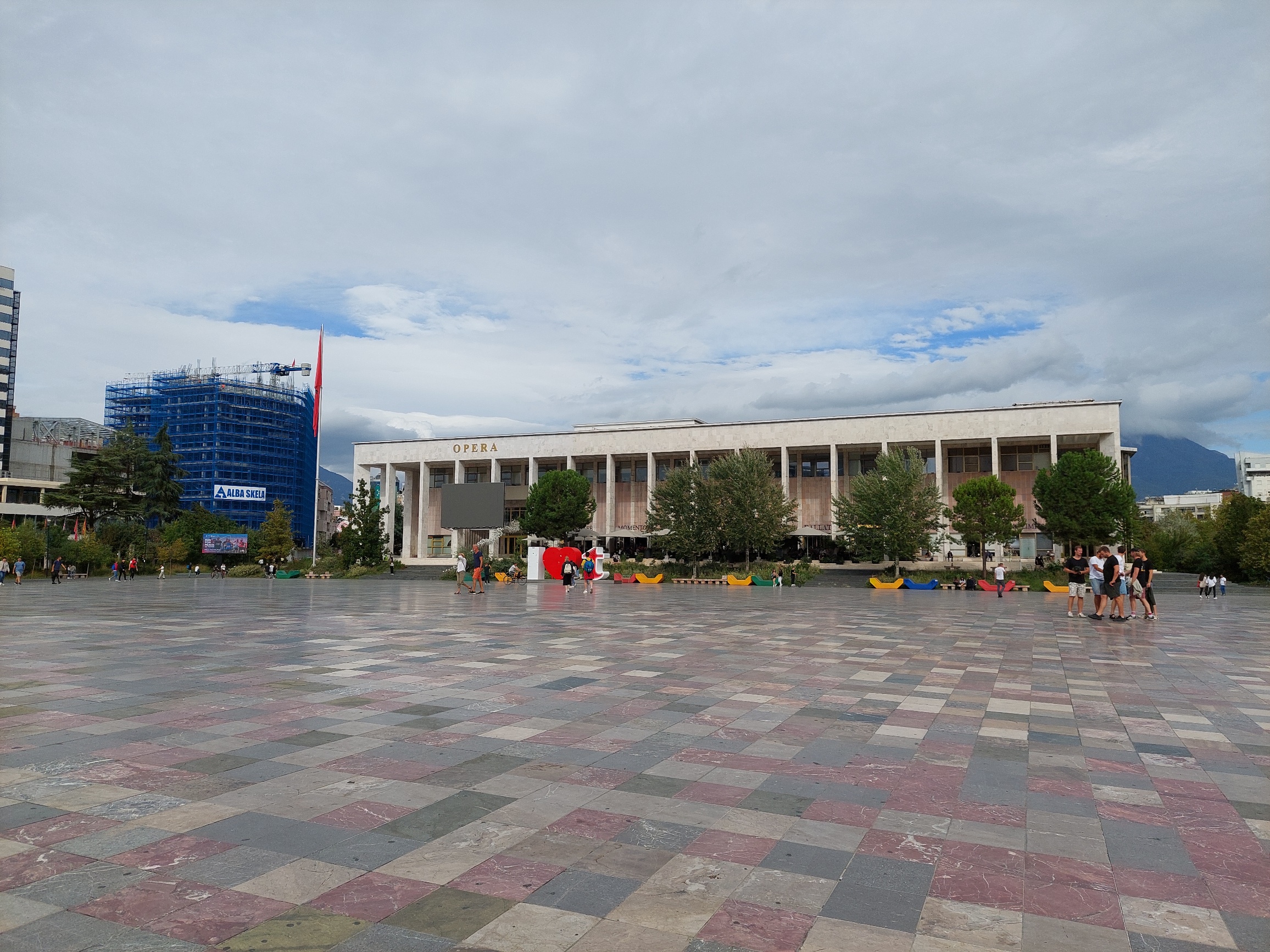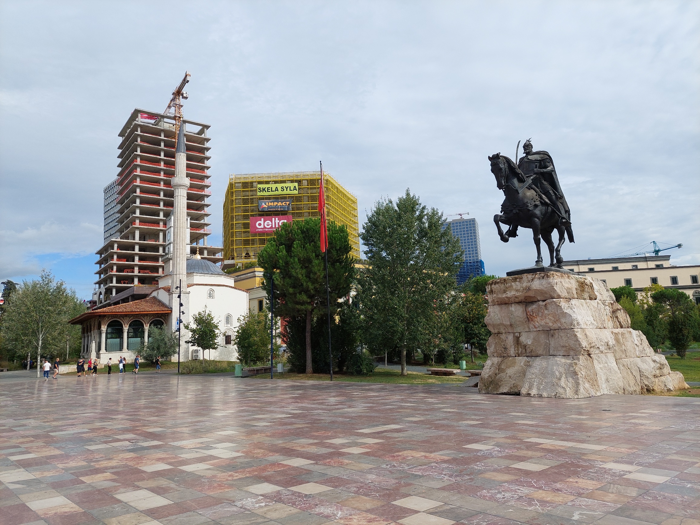 Ci sono pochi monumenti storici, ma tanti musei e cose da vedere. La centralissima ed enorme Piazza Scanderbeg, è grande e vuota. Ai lati, la piccola antica moschea e la torre dell’orologio, unici monumenti storici, sono sovrastati da altissimi palazzi e hotel in costruzione.