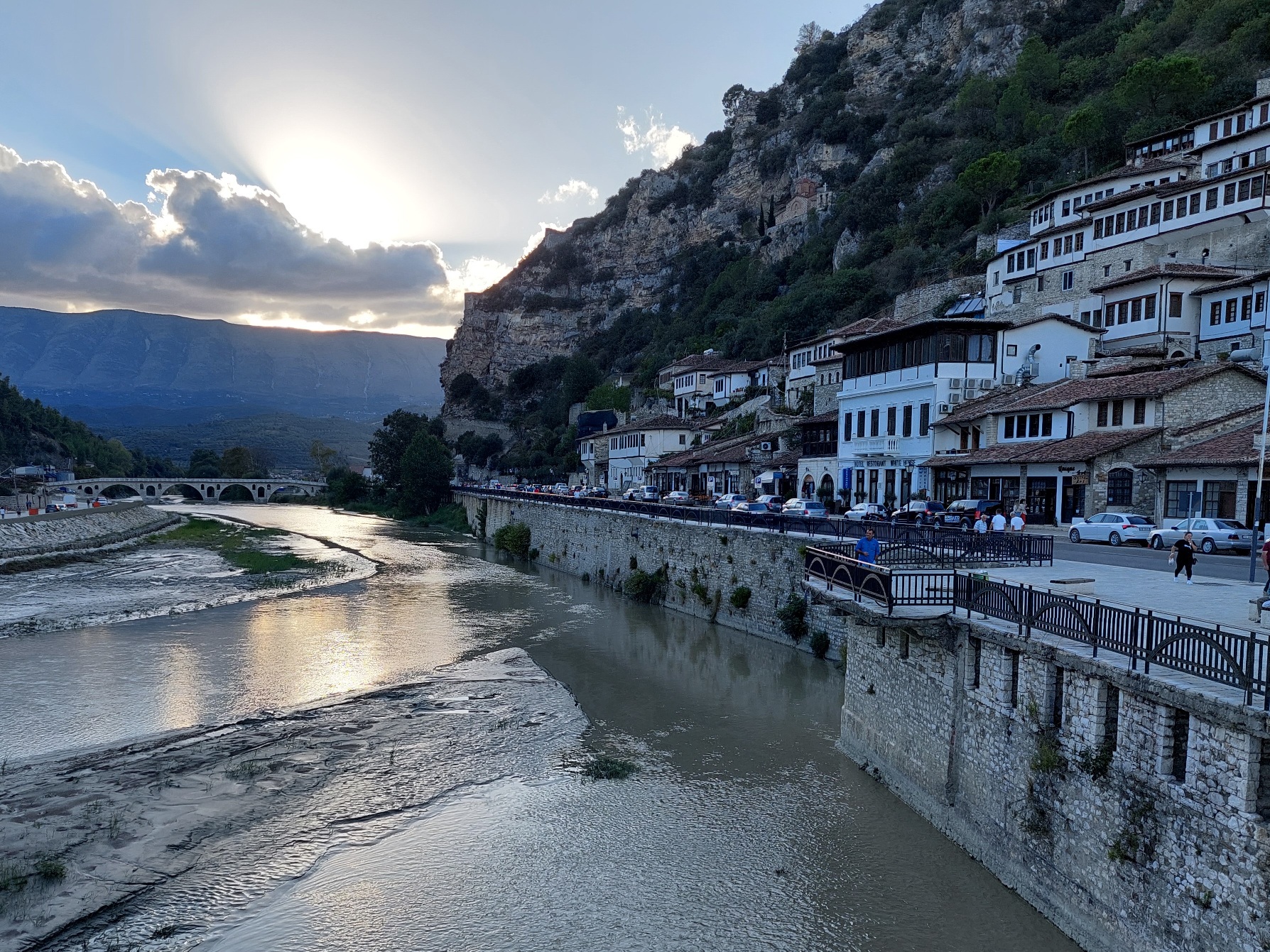 Verso le 17 ci incamminiamo e in 10 minuti siamo al borgo di Berat, davvero pittoresco, sembra un villaggio ottomano, intatto, arroccato su una collina e dominato da una fortezza.