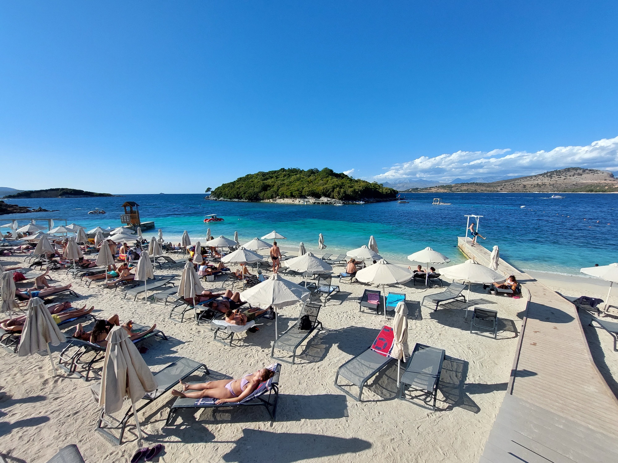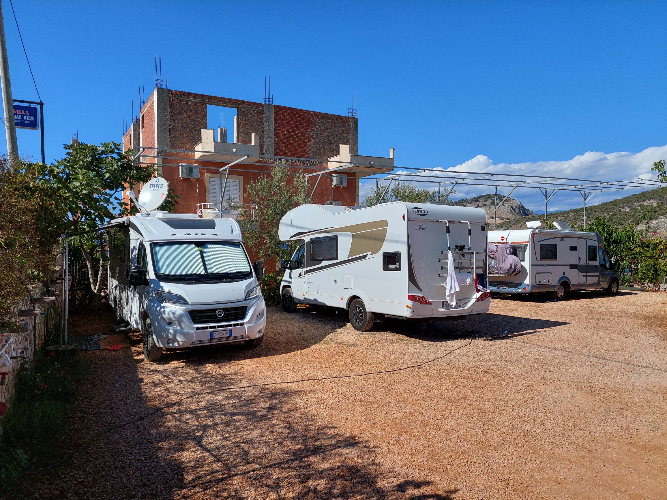 Poi partiamo in direzione di Ksamil. Questa parte dell’Albania è sicuramente quella dove vediamo più rifiuti e spazzatura in giro, ai lati delle strade. Comunque, non potevamo lasciare l’Albania senza vedere una delle località di mare più conosciute e più frequentate. Arriviamo al Ksamil Caravan Camping.